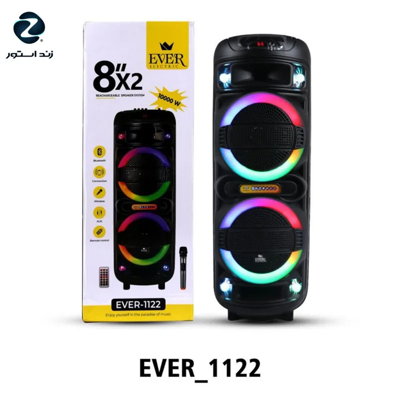 اسپیکر 1122 یک اسپیکر بسیار زیبا از نظر طراحی بهمراه کیفیت ساخت بالا از شرکت اور میباشد. .این اسپیکر از نظر امکانات و کارایی کامل میباشد و هم فلش میخورد و بلوتوث و ایوایکس و میکروفون و ... در جلو اسپیکر یک پنل تمام ال ای دی قرار دارد که جلوه های محتلف نوری ایجاد میکند که در شب نمای بسیار زیبایی دارد . سایز باند های اسپیکر 8 اینچ میباشد که میتواند جوابگو جشن های 20 نفر را باشد . در بالای اسپیکر یک پنل حرفه ای برای تنظیمات صدا و نور اسپیکر قرار دارد . این اسپیکر هم امکان استفاده با برق شهری و هم امکان استفاده از شارژ را داراست که استفاده از شارژ دستگاه دوام باتری ان را افزایش میدهد. این دستگاه به دلیل داشتن باتری بزرگ 9 که شارژ میشود و بابرق قابل استفادست. سایر ویژگی هارا در قسمت مشخصات میتونید مطالعه نمایید .